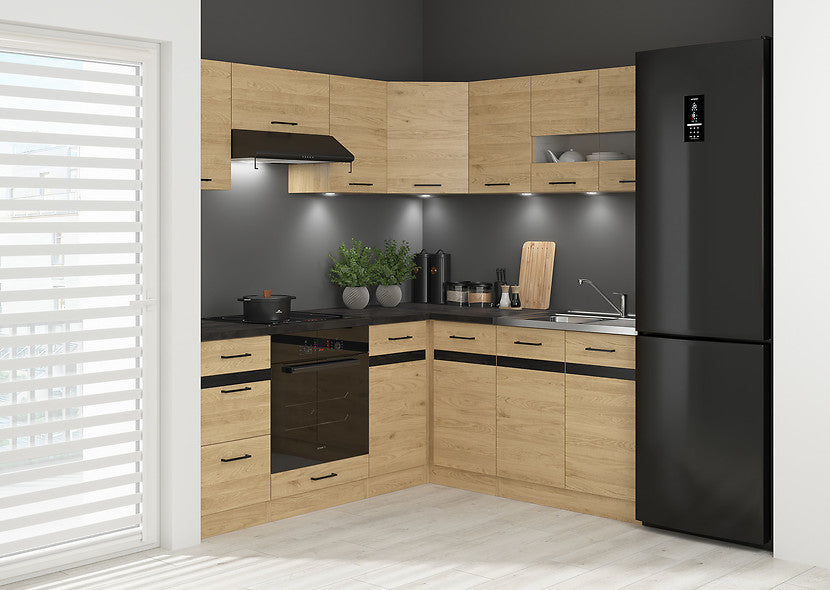Junona Line kjøkkensett - Bernstein Eik - 180x200 cm - Venstre