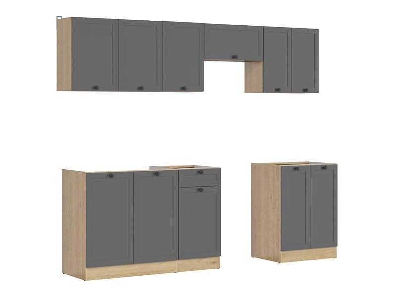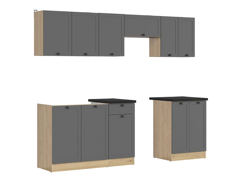 Junona Line kjøkkensett - Grafitt/Eik - 240 cm