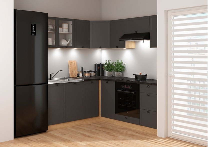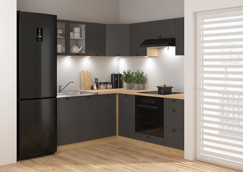 Junona Line kjøkkensett - Grafitt/Eik - 180x200 cm