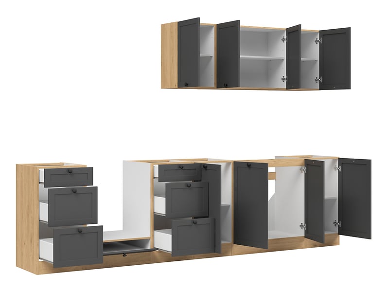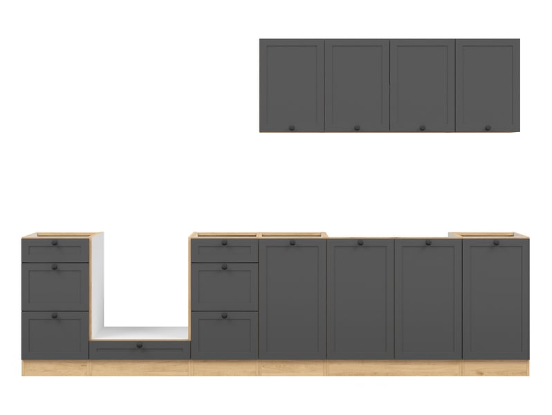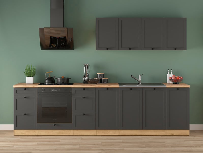 Junona Line kjøkkensett - Grafitt/Eik - 300 cm