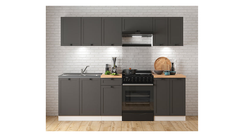 Junona Line kjøkkensett - Grafitt/Hvit - 240 cm
