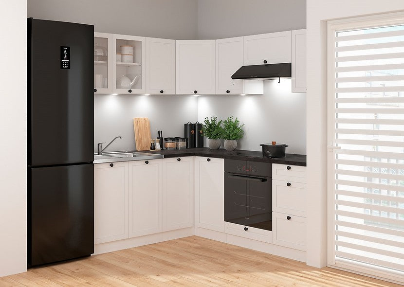 Junona Line hjørnekjøkken gir deg maksimal utnyttelse av plassen og en smart løsning for små til mellomstore kjøkken. Praktisk utformet med både over- og underskap, og plass til hvitevarer som vask, komfyr og ventilator. Utførelsen gir et moderne uttrykk med kraftig materiale. Merk: Hvitevarer medfølger ikke. Junona Line finnes i flere størrelser og farger.
