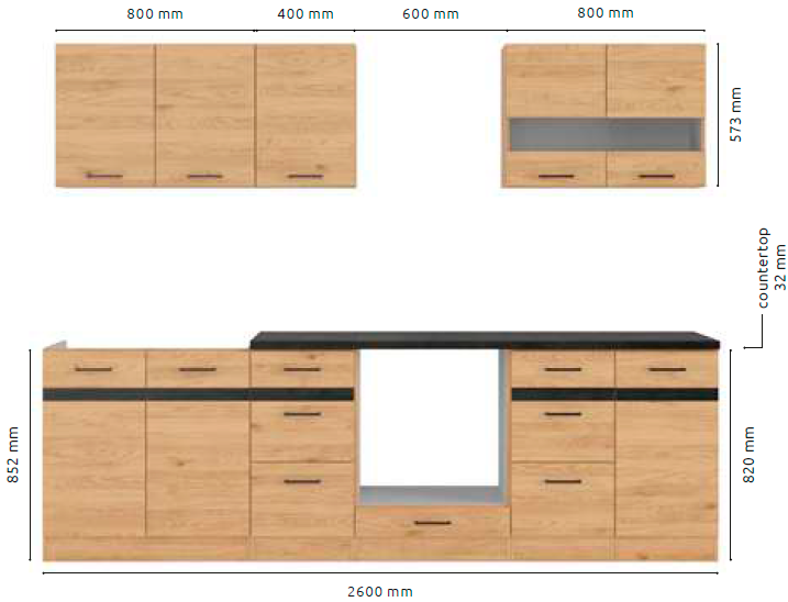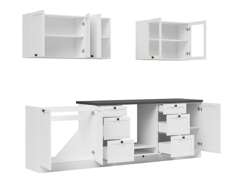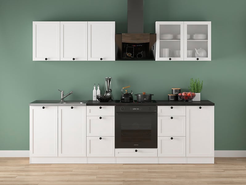 Junona Line 260 cm gir deg et ekstra romslig kjøkken med god oversikt og mange oppbevaringsmuligheter. Leveres med over- og underskap og tilrettelagt plass for vask, komfyr og ventilator. Utførelsen gir et moderne uttrykk med kraftig materiale. Merk: Hvitevarer medfølger ikke. Junona Line finnes i flere størrelser og farger.