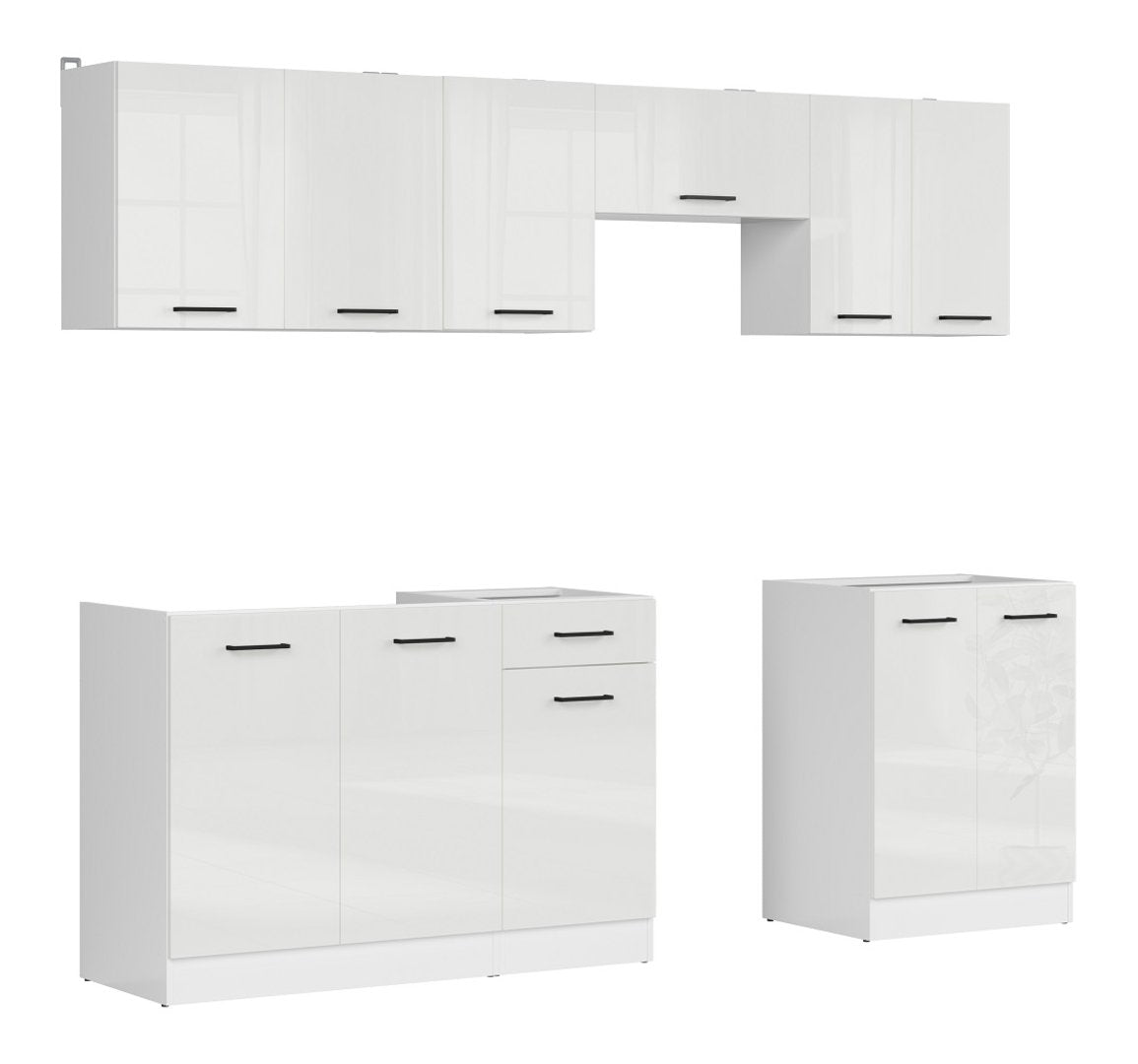 Junona Line kjøkkensett - Hvit Glans - 240 cm